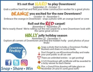 If you’ve been driving through Downtown Findlay lately you may have noticed its a little tricky to navigate. We understand the frustration, but don’t let some construction get in your way to visiting your favorite restaurants and shops. To reward those who are making the trek Downtown, Visit Findlay has collaborated with the Downtown Services and Retail Association and Downtown Food and Drink Club to bring a special promotion to those who shop, eat, and play Downtown – and the good news is that it has already started!
