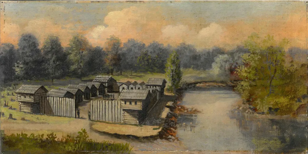 Small cabins were erected against the stockade inside the fort to house a token garrison of 15 men and officers. The fort was staffed until 1815. There was no military action of any kind here and fears of Indian attacks never materialized.