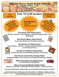 This event will be held on October 11, 2025 from 9:00 a.m. to 3:00 p.m. at the Van Buren Local Schools located at 217 South Main Street, Van Buren, OH.
