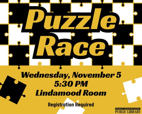 Findlay-Hancock County Public Library 206 Broadway, Findlay-Hancock Co Public LIbrary, OH, United StatesJoin us at the library on November 5th from 5:30-7:30 PM for our first ever puzzle race! Teams will race against each other to complete a 500-piece puzzle. The fastest […]