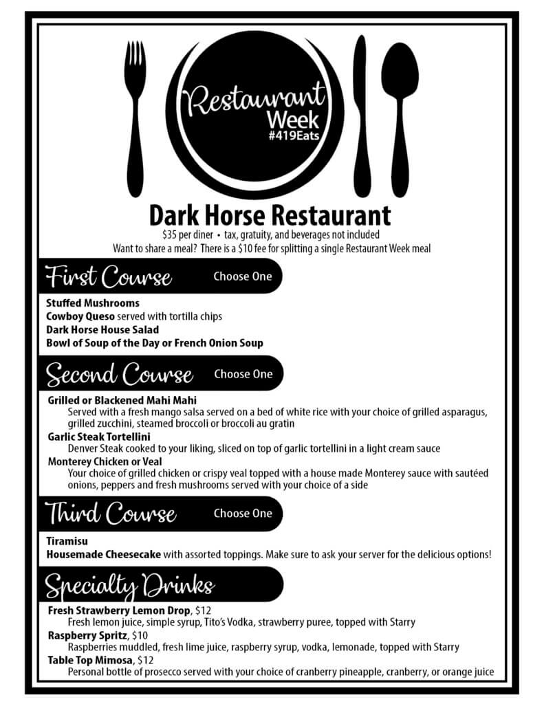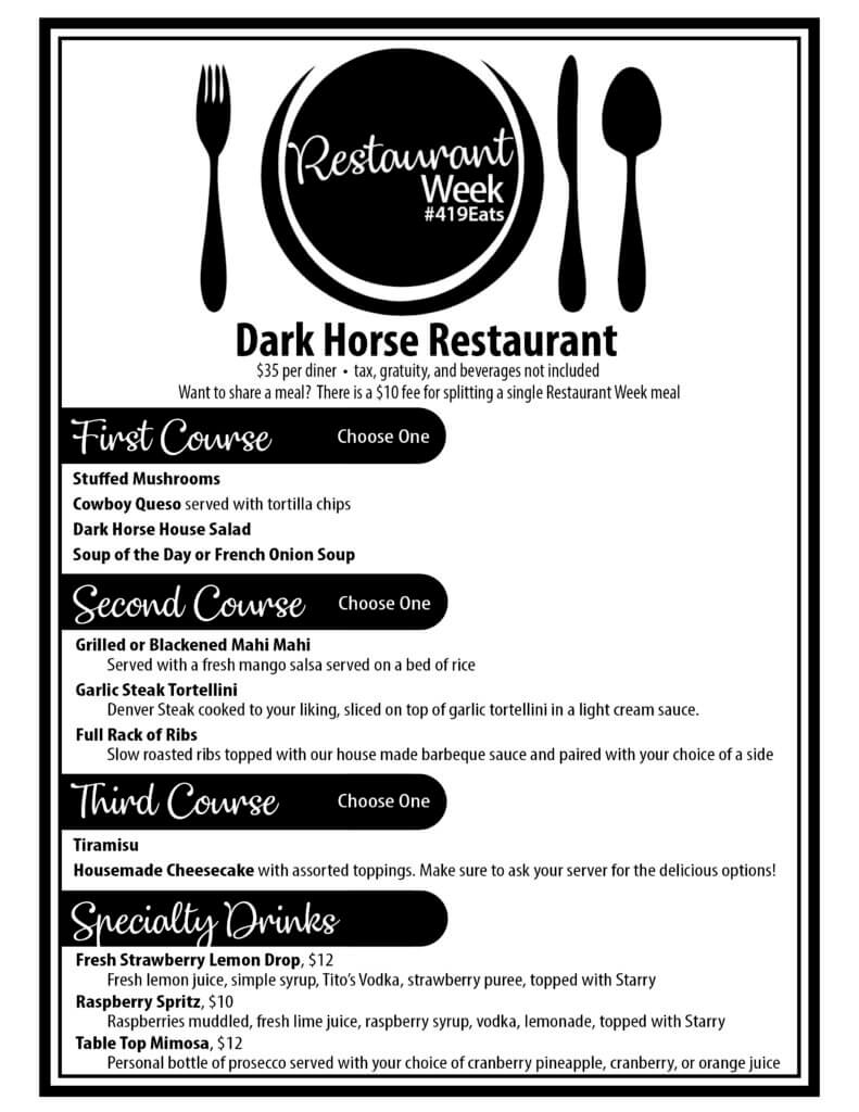 Restaurant Week Hours: Monday – Thursday, 4 – 9 p.m.; Friday – Saturday, 4 – 10 p.m.
