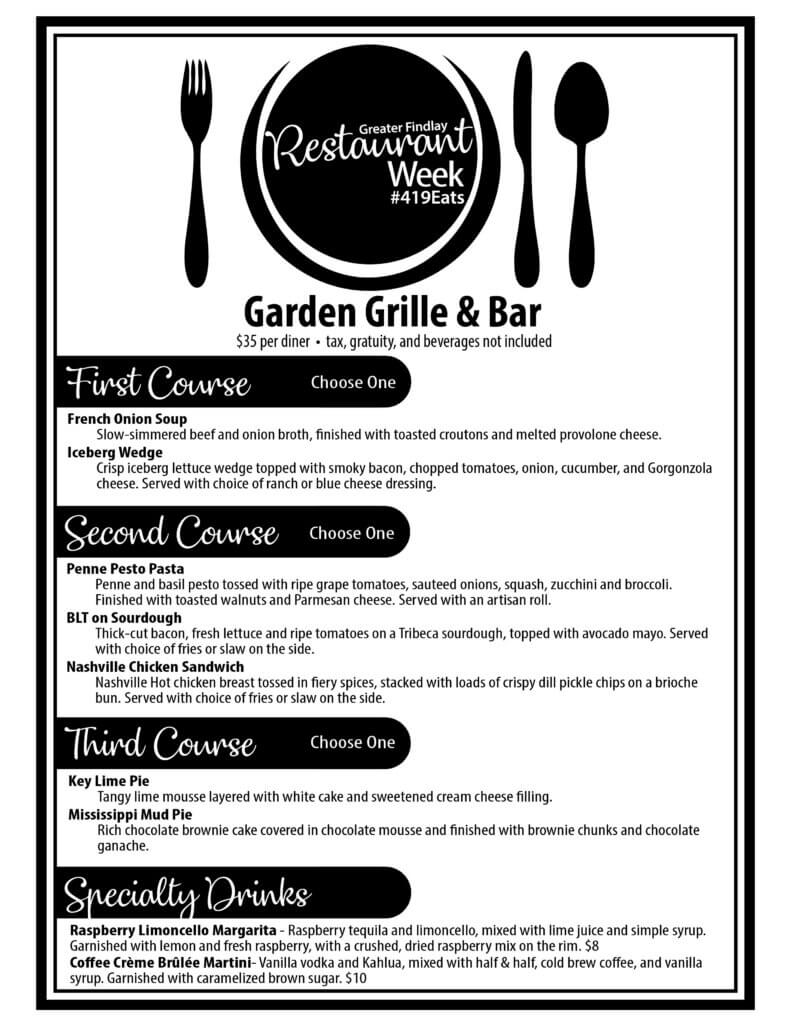 *Menus and Hours subject to change without notice. Cost does not include drinks, tax, or gratuity. Reservations suggested at many locations. Available for Dine-In Only.
