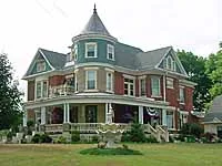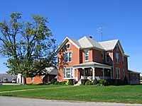 Hamlin House, 511 South Main St., Mt. Blanchard –Built in 1882 by Melancthon and Maylongton Hamlin. Hamlin was a farmer and bought and sold stock, owning about 720 acres of good farm land. This imposing brick mansion drew a lot of interest with the railroad bringing weekend excursions to Mt. Blanchard. Attic-mounted cisterns supplied running water to the home and fine hand-painted marble or soapstone was used in the construction of the fireplaces. The mansion is of Italian architecture. Only one room in the structure has been redone – the kitchen. The three floored home houses two original copper bathtubs. Heated by coal, the house has eight fireplaces throughout the home. The house was restored many years ago by Bill and Doris Lishawa. Every inch of the woodwork was re-stained using over 150 gallons of stripper.