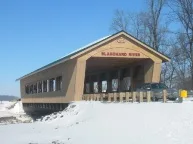 Wooden Covered Bridge, TR 241 between St. Rte. 568 and TR 208 – Completed February 2010, Hancock County’s only covered bridge was originally designed by Smolen Engineering from Ashtabula, Ohio. Bridge project costs totaled $880,000.00, of which 95% of the funding was supplied by Federal Highway Funds. Wooden timbers, referred to as glulam wood, for the structure came from the state of Oregon and were treated with a preservative and sealant to allow the timber structure to age naturally. However, periodic sealing will be necessary from the Hancock County Engineer to maintain the integrity of the structure. The covered bridge replaces the last historic iron bridge in Hancock County that was moved into Riverbend Recreation Area. After some renovations, the park’s trail system will eventually be linked to the structure.